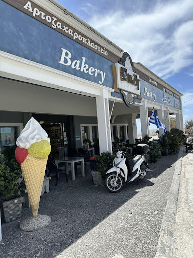 Read moreYou must stop at this bakery to try their orange cake. It is the best cake on Santorini, maybe in all of Greece. Buy at least two pieces. One to eat immediately, the other to take away as you will have a craving once you drive away. All kinds of cakes, pastries, pizza, candy, gelato, sandwiches, hot foods, all at a reasonable prices. Staff is very friendly and will happily answer all your questions and make recommendations for their offerings. Casual seating inside and on their patio. Walking distance to the town of Megalochori. I dream about their...