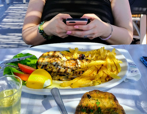 To top it all off, the waiters have all the energy and urgency of stale fish left out in the sun. No wonder it took nearly two hours for a couple plates of fish. And I should blooming well hope it's fresh being on a Greek island - but it's clearly not! Who are they kidding charging tourist prices for this garbage?
