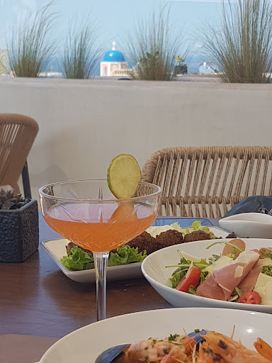 Read moreWe stopped by this place when getting dropped into Oia one night and they happened to have space for us to have food and drinks. We were sat on top of the bar on a terrace which only sat another 3 groups of people so it was very small and cute. There were also some other seats across the top which were more like lounge beds for people having drinks only. The view to watch the sunset was amazing and more than we could have hoped for after stopping here on short notice. The salmon was delicious and so tasty. My partner had the burger which he said was one of the best he’s had. The wine was also delicious and the bartender also kindly made us espresso martinis even though they were not listed on the menu which was lovely and were made perfectly. It was very windy which is expected in Santorini but after the sun set they found space for us downstairs. We could not fault the service in this place. It was a perfect evening from...