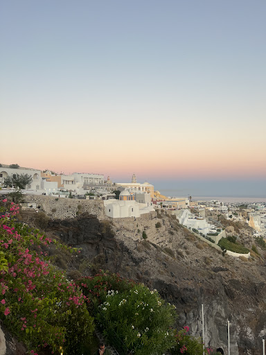 Fireworks tickets were €25 per person and included 1 cocktail. This was the perfect location to watch Ifestia and had a great vantage point overlooking the volcano. After the show, they allowed us to stay and enjoy the atmosphere. The bar is multi-level, winding down the cliffside. There are a lot of stairs. Our group hung out on a middle level, and the staff turned our space into a huge party after the fireworks. They led us in Greek dances, played popular dance music, and gave free shots to that whole area.