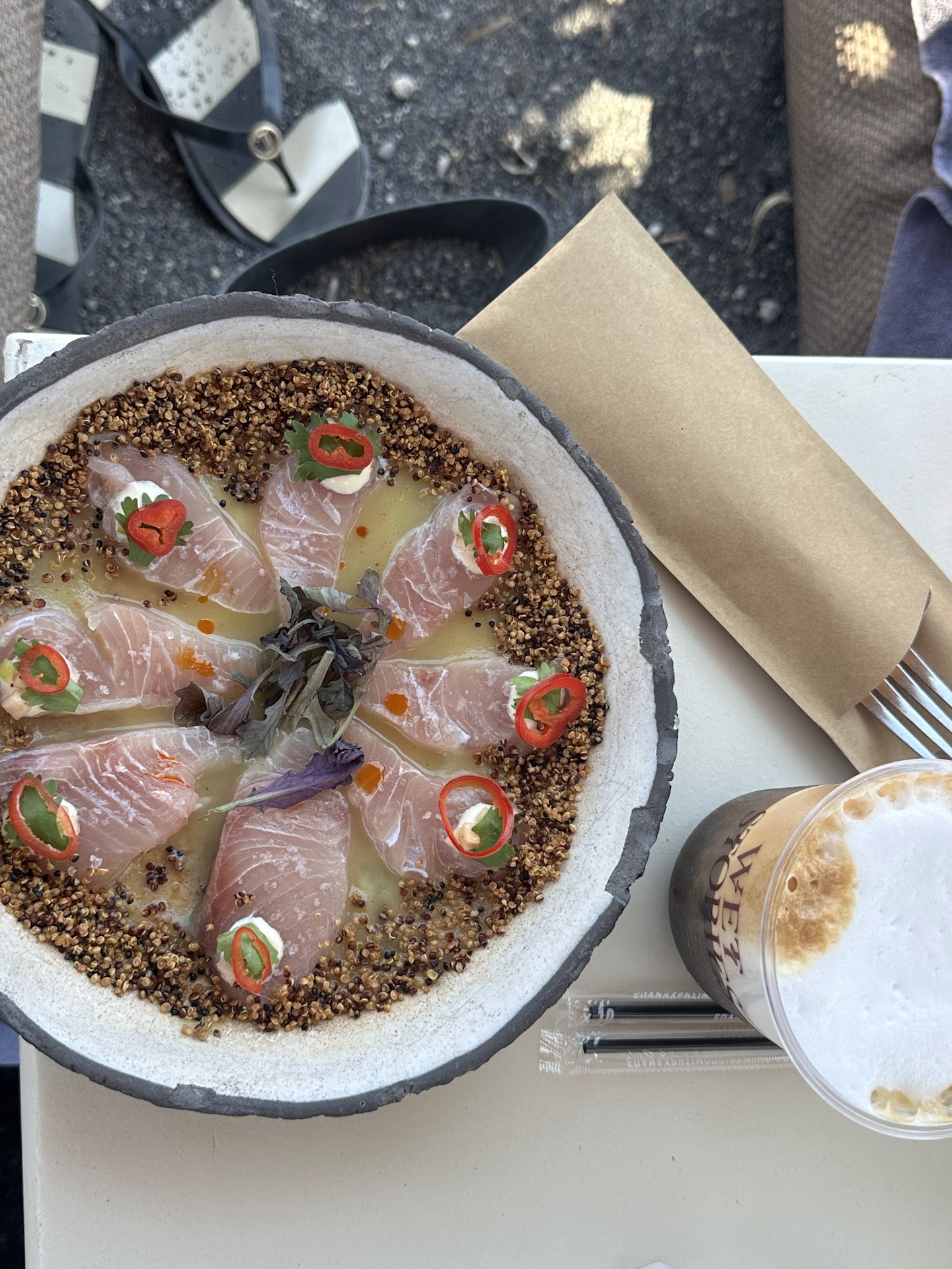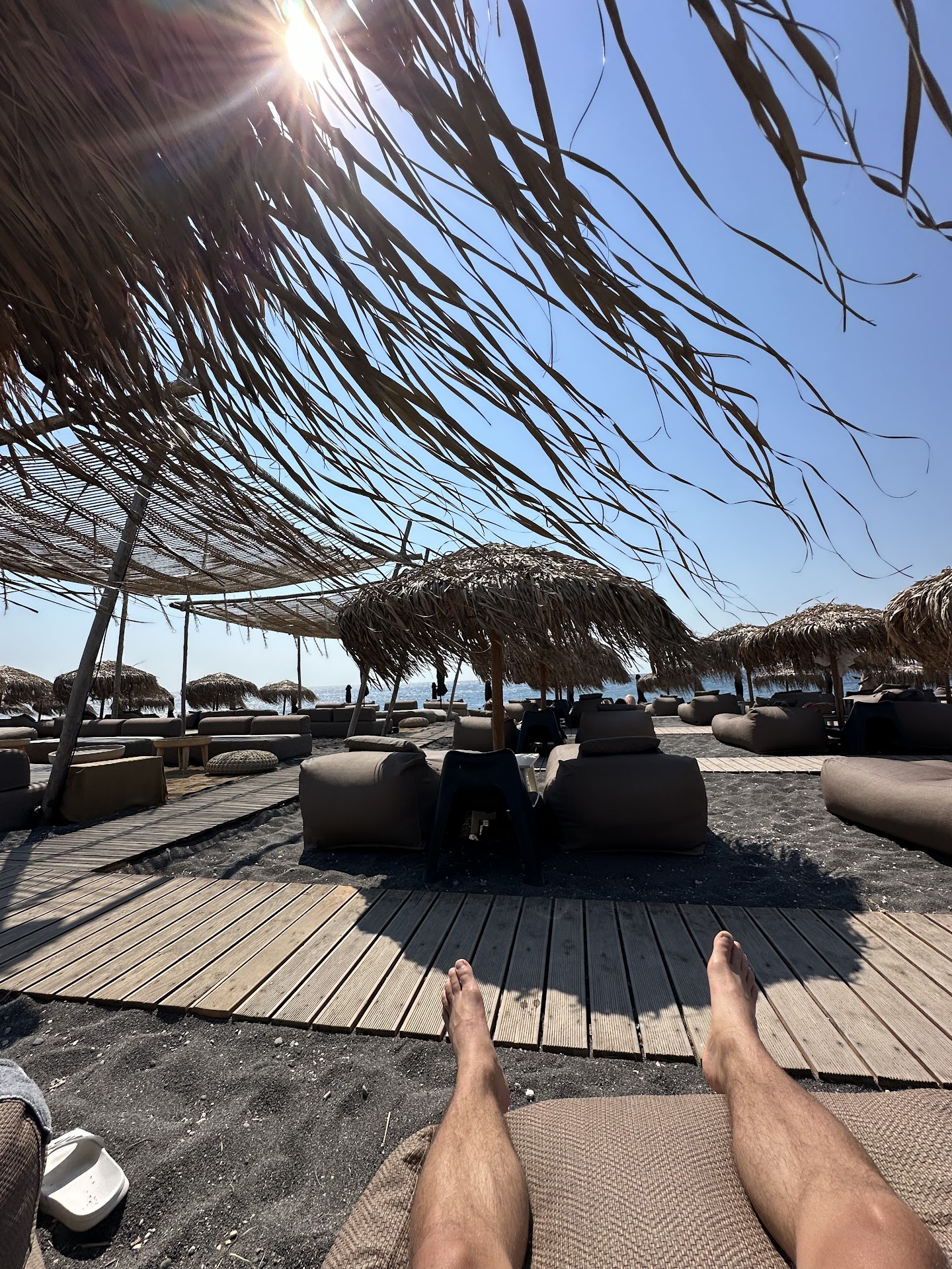Read moreI really wanted to love this place. I visited today between a ferry and flight hoping to have some food and drinks and check out the vibe as I enjoy going to this type of beach club, and my research yielded this as the best spot on Santorini. The vibe on first impression seemed reminiscent of Scorpios or Carpe Diem, albeit on a much smaller scale. The beach area looks nice, and I can only hope that the service on the beach is better than in the bar/restaurant area.