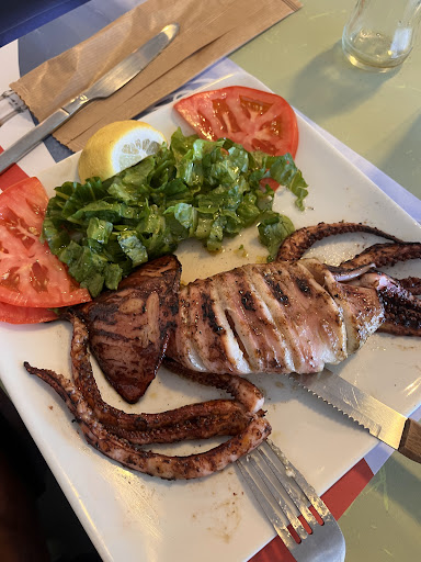 We ordered a mix of traditional dishes to share — the Greek salad was refreshingly crisp with generous chunks of feta, the stuffed vine leaves (dolmadakia) were beautifully seasoned, and the grilled souvlaki was juicy and full of flavor. Everything tasted incredibly fresh and made with love. The local white wine recommended by our server paired perfectly with the meal.