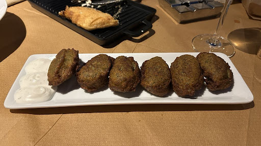 Had the most delicious pork you will ever eat. 9 hours slow cook on the knuckle and when it turned up, I nearly died.it was.so big! It was enough to share between 2 but wow oh wow, the flavour, the way it fell off the bone and the tender meat just melted in the mouth! On top of that the salad we ordered was lovely, the chips were the beat I've tasted on the island (simple but the flavour clean and to die for!)and the aubergine starter was absolutely devine. Honestly I dont think anything here will disappoint, oh and we saw someone orde rthe tomahawk which was incredible and gave us food envy! The table polished it off, nothing g left but the bone. I think that says it all fot this place. Oh, no wait, the cheesecake they brought out after (all dessert is a thank you here in Greece) well, it was also blow away tasty. Just come and see for yourself. Form thw outside we nearly passed this place as we drove by in Steni, don't! Put it on your gp to. The old town is lovely, this place thou is stand out over the tavernas in the old town. The food much better. And the bill equally as good. €50 3 starters and 1 main plate and 1/2 kilo of wine, water and and bread. If that helps put it...