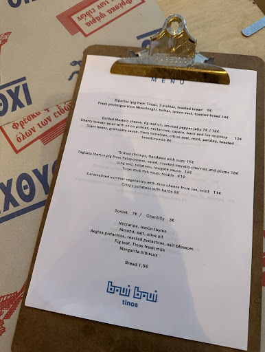 Read moreWe had the chance to dine in this little gem of the place thanks to our friend Errato in Errato jewelry. It was the delicious gourmet food and also lovely people, excellent wine and a great story we found in Boui Boui. They serve small dishes to share all Greek and local products with a creative touch. Our orders were Anchois (most delicious ever), Tomato salad, Mastello with spicy fig marmelade (excellent), shrimps, yummy potatoes and home made peach, almond, fig leaf sorbet. We had the opportunity to talk with Chef Valentine and listen her story of moving to Tinos, a woman down to earth with great courage and talent. Chapeau as French would say! This is a small, simple looking and warm place, be sure food is delicious, honest and people genuine. It was one of the best experiences during our two week Andros-Tinos holiday. It is just in the corner of Chora in a peaceful spot away from crowds and noise. Do not miss if you’re in Tinos. Thank you Valentine and Léana for the great evening. We wish you...