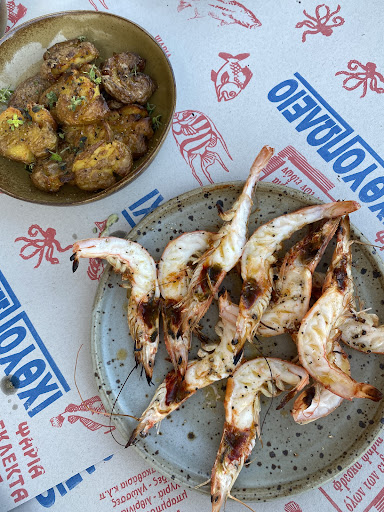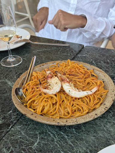 Rarely imagination meets reality, and when it does, you can sense it instantly. As we enter Valentine's world everything feels like there was a thought behind it, from the simple open set up, the beautifully essential mise en place that evokes the simple elements of the island, the kindness and competence of her small dedicated team, the open-onto-the-room kitchen laboratory, where Valentine experiments her poetry into plates. Every plate seems to be merging her life stories, the highest grounds she walked, dived (her and her family are spearfishers), sensed while traveling and living in places of the Mediterranean. Her stories come from far away but aim to merge in an uniccum place and this is something you can taste into every mouthful. The Iberian pig grew in the Peloponnese, the fish soup made with Blue crab fished by her, the fabulous rillettes, the sensual bottarga from Messolonghi, the island caramelized fruits meeting the vegetables from the garden, the incredible house made sorbets (and chantilly!) like a song you long to listen on repeat. The natural wines pairing selection, just perfect. Even the house wine. The people around us in the room feel like kindred spirits and at the end of the night we are all chatting with each other. Every night we have been it has turned into a spontaneous feast. Valentine, while I am about to leave tells me: 'I want to sculpt even more, reach the simplest core'. The two nights I have returned are still igniting me with joy and inspiration, and I look very forward to...