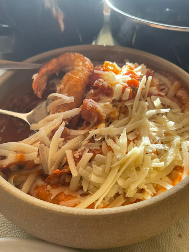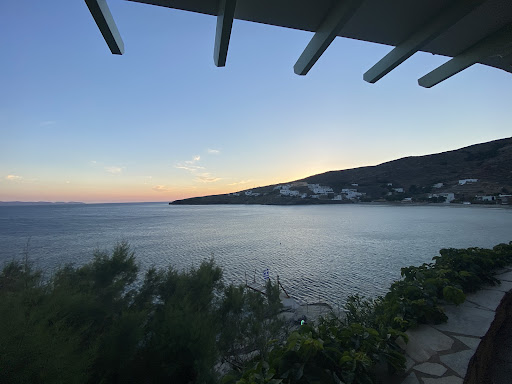 I came here today, early June 2021, for a Saturday evening early dinner, at around 19 hours. Let me start from the scenery. It is spectacular, I have no words. We also enjoyed the sunset, yes there is a bonus view to that, so even though it was random the choice of time was perfect. Now let’s go to the hospitality. I called an hour early to book a table, I recommend you do that way earlier, we were lucky to find a table, but even if you don’t, you will be treated nicely. Our table was on the second row, although they offered a front row table, but we would have had to give it up before a certain time. I knew we would have finished by then, but we were on holidays and we don’t like pressure. Kudos for the recommendation though. We were a bit skeptical for bringing our dog, it is a big one, wondering if it would be welcome. It was almost more welcome than us, we felt so relaxed for it. A bonus for their hospitality, we received a fish soup, called kakavia, as an opening to what we ordered. I recommend the Greek salad, the feta cheese on it is excellent. Now let’s go to the main thing. We had the schrimp pasta. Think of the best one you have ever had, that was a bit better. The pasta perfectly cooked to my taste, spices in excellent balance, the tomato sauce was almost not there, just to get the idea, and all the sauce mostly coming from the shrimps. Like the perfect schrimp pasta. I rate it for 10/10. As for the quantity, take it as a challenge, you can’t eat the recommended portions. I...