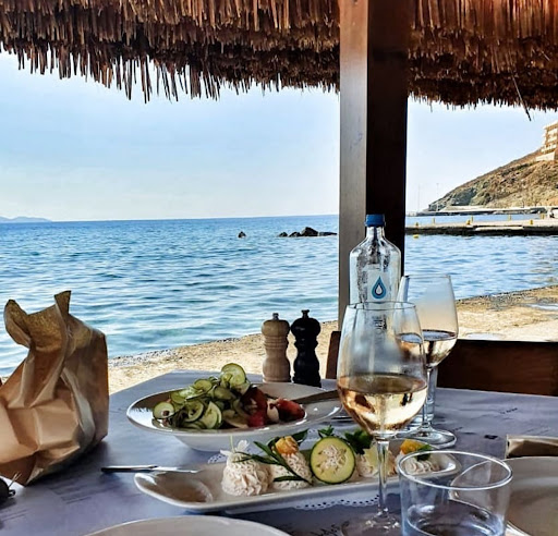 This is not your bog standard seafront taverna, so don’t expect cheap eats - but prices are really very reasonable for what you get. The menu is ambitious and imaginative, executed to perfection, with emphasis on freshness of ingredients and precision of flavours, not gratuitous innovation. The portions are generous. The wine list is not large but excellent, with some real gems we didn’t find anywhere else. The service is flawless - confident, competent and unobtrusive. And you are sitting level with the sea, having to lift your feet occasionally if big waves crash from the odd ship passing, listening to wonderfully discrete & low-volume lounge music, with equally well-calibrated lighting....