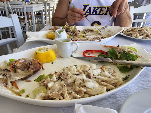 Read moreA colorful seafront tavern situated at the water edge of Panormos village , on the north-east coast of Tinos island. Service is fast and extremely polite and since we’re in Tinos there are French speaking waiters. The location at the waterfront is top. The food is basically fresh sea food , an abundance of local vegetables being served as salad or grilled or boiled plates. We had the grilled calamari which was perfect, fried little fish ( gavraki) , zucchini & cheese local pie ( try it!) and artichokes in oil, washed down with ouzo. Prices are good and you can...