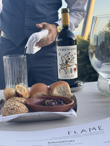 The atmosphere was pleasant and we were able to sit on the terrace enjoying the sunset across the Romanos area. The service personnel was attentive and overly friendly. We will definitely come...
