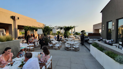 It's a very, very nice location and the architects did a great job. You are sitting on a small cliff under grapevines enjoying the sun set. The white furniture and the little details do the rest to make you feel in a very special place.