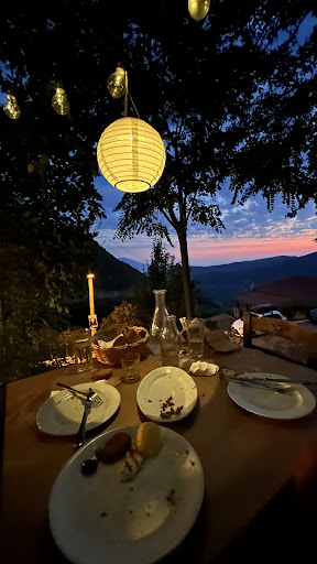 Read moreAbsolutely wonderful setting in the mountains with Kyparissia at a distance. We never seem to arrive early enough to enjoy the panoramic views of nearby villages and the sunsets! The traditional stone setting on multiple levels making this romantic and enjoyable with large groups of family and friends! The menu is traditional Greek cuisine, at it's best! Famous for homemade pasta, pork in wine sauce, lamb and ham hock in parchment paper. Homemade french fries like no other. Delicious pita pies, meat, eggplant and cheese. Melted cheese dishes, yogurt/beet dips, smoked eggplant/yogurt dips. Dessert is on the house banana crumble. Superior to none Rake/Moon shine to digest. Book your table so you're not...