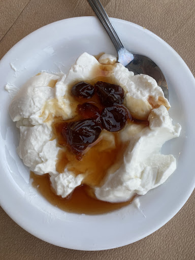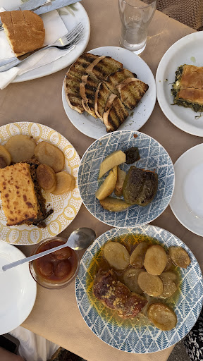 It’s a simple place with tasty food right near the shore. (Don’t expect classic restaurant format) Most of the food is already prepared and you can choose whatever you want. There is also fresh fish to grill. We ordered musaka, chicken roll, rice stuffed bell pepper and spinach pie. Everything was delicious (except maybe the spinach pie was a bit too oily for our taste so we couldn’t finish it). We got served grilled bread on the house as appetizer and when we finished our meal the owner gave us free yogurt with what seems to be jam and then brought some homemade spirit shots to finish this all with. The food is surprisingly tasty, but the highlight is the atmosphere itself. It’s chill, modest, very homey and relaxed and the owner is VERY welcoming. It’s a nice authentic...