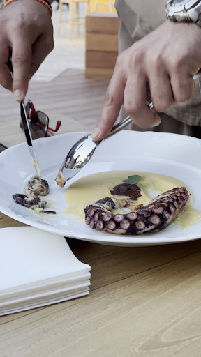 I ordered the picanha, and unfortunately, the sauce it came with was truly bizarre—so much so that it left an unpleasant aftertaste, and I didn’t even want to finish the dish. The octopus, while the sauce was a nice addition to the menu, was slightly overcooked. At least the sauce with it was enjoyable. Also, if you have any dietary restrictions or allergies, the menu is quite limiting.