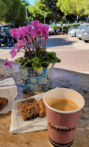 Read moreMARVELOUS!!!!! My family of four arrived at Vouliagmeni this afternoon. While walking along the main street looking for a quick bite, we were drawn into Artopolis which displayed a beautiful array of tempting cookies and mouth watering gelatos. After making our choices of cookies (we tried nine different kinds), we availed ourselves to the sandwiches, salad, and lunch pastries which were housed in the back of the shop. The food was delicious, staff were accommodating, and the owner, Elefthería, was most hospitable! After seeing how much we had enjoyed her food, she even offered us some free pastries and cookies to try! We enjoyed the experience so much that we promised ourselves to go back tomorrow morning for some fresh-baked koulouri with some more baklava and...