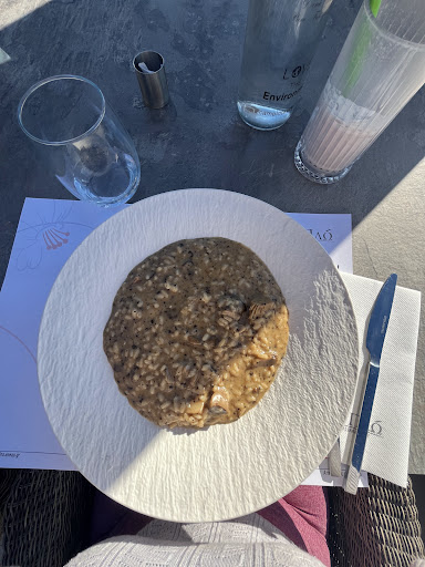 Read moreAlthough the name of the restaurant is blue fish the only fish you can eat there is salmon. My friend wanted to order one of the ciders they have but they weren’t selling them no more. I went for smoothie with strawberries, banana, milk and tahini. 7€ and it was absolutely tasteless, I gave up after drinking half of it. My friend ordered a glass of rose, we started wondering if they are picking it he grapes it took so long. After asking the other waiter we finally got it. The place is quite big but on Tuesday afternoon there were maybe 7-8 tables busy. After 50 minutes we finally got our main. My mushroom risotto was distasteful. Mushrooms were chewy basically impossible to chew, butter was everywhere making the dish tasteless and heavy. I called the waiter to complain then he went to another table where other customers (or his friends) were sitting, said something and they all turned around and stared at us. Another waiter came and asked if I want the same dish or something else from the menu. My friend has buddha bowl with shrimps and was really disappointed. 17€ for 3 cold shrimps from some can, a little bit of mango sauce. I had a bowl with yogurt instead. It was decent but yogurt was greek type one so very thick. I haven’t heard any apologies or any nice little gesture from them to make it up. I still had to pay but just with a price difference. The view is nice but it’s not...