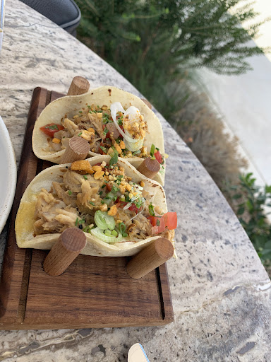 We absolutely loved our food and our server here. While the website describes this as fine dining, we were a bit surprised to find it’s actually poolside—with guests in shorts and flip flops, the ambiance felt more casual than expected. That said, everything else was exceptional. The wine list was impressive, the cocktails were spot-on, and we leisurely enjoyed our evening with drinks, appetizers, entrées, and dessert. Every dish was superb. Our server went above and beyond to accommodate my vegetarian preferences—even consulting the chef about an alternative sauce. He was attentive, knowledgeable, and genuinely kind. In fact, the entire staff was wonderful. Smiling, helpful, and clearly well-trained, they made the experience feel special despite the...