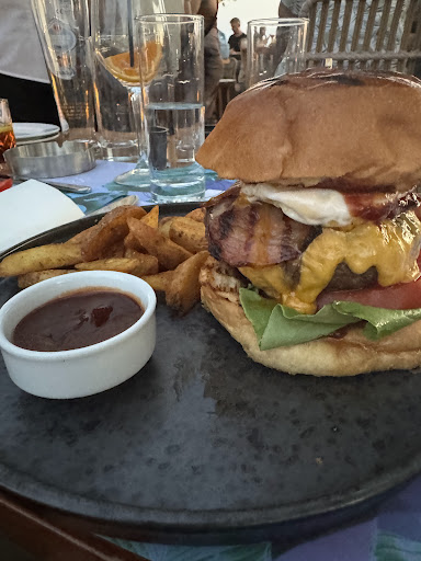 That said, the sunset view here is breathtaking, and the place is genuinely romantic—perfect for sundowners. Our total came to around €30 per person, which is pricey, though lighter options like club sandwiches and snacks could bring the cost down to about €20 per person.