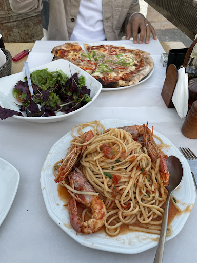 Την ώρα που φτάσαμε είμασταν οι μόνοι πελάτες, καθώς η σάλα ήταν άδεια.. Παραγγείλαμε μια σαλάτα και δυο πίτσες. Η σαλάτα («verde») μικρή σε ποσότητα, ήταν ανάμεικτο μαρούλι με την sauce λεμονιού που έγραφε η περιγραφή του μενού να ήταν απλή κρέμα βαλσάμικου.