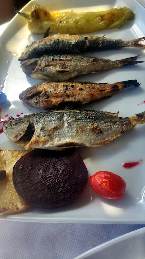 Do not pass by and do not even think about it. We were already driving north, but we decided to have a bite to eat and of course we found these two neighboring taverns. And we thought for a very long time where to go, and I think that these two tavern ones are worth each other. They are both good. But we decided to go to this tavern, because it looks simpler, as we expect a tavern for the local people. And we went here and were not disappointed. And I think it's even deceiving to sit on the coast, in a simple room with a very simple environment. But once you go into the main restaurant area, and you will see that everything here is more than decent - modern equipment, cleanliness and order, and we were very surprised and happy about this. The food is very simple, exactly as we wanted, fish seafood large portions and not very expensive. We wanted it, we expected it, and we got it. And as you can see, we had a good meal. Nice place right by the sea. The food is simple, fresh, which was important for us, no frills, but it was served as in a good expensive restaurant. We enjoyed lunch. And view, there is a beautiful view of the sea. If you pass by, be sure to stop, you...