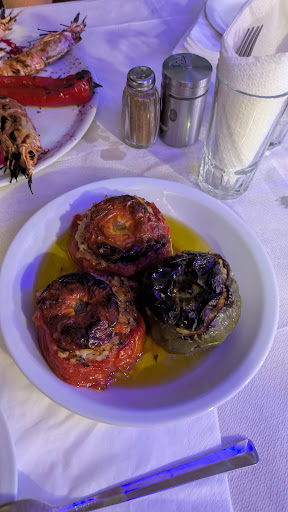 Read moreYou sit right above the water and you hear the sound of the waves. It is closed in the winter so there's only outdoor seating and none indoors. We had a huge portion of deliciously fried zucchini with a very nice tzatziki.we also enjoyed very big grilled shrimps and a perfectly grilled sea bass. The house write wine is also very drinkable. They do not have draft beer.