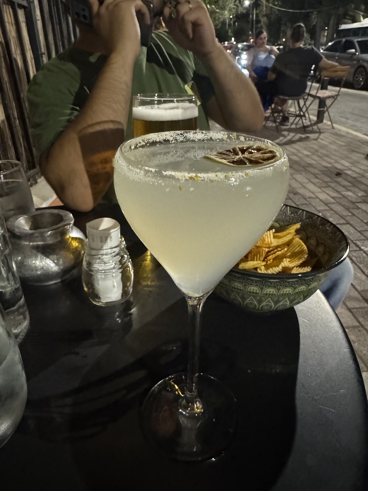 Μια πολύ ευχάριστη έκπληξη στην περιοχή του Βύρωνα. Πήγα δύο φορές πριν κάνω την αξιολόγηση μου για να είμαι σίγουρος ότι η ποιότητα και η εξυπηρέτηση που έβαλα εγώ και η παρέα μου ήταν το στάνταρ και όχι κάτι που απλά έτυχε. Τα παιδιά στο σέρβις ήταν υπέροχα έτοιμα να σε βοηθήσουν στο να κάνεις την σωστή επιλογή στα κοκτέιλ που μπορείς να απολαύσεις με γνώμονα τις προτιμήσεις σου σε βασικά υλικά και γεύσεις. Οι τιμές πολύ τίμιες για τα κοκτέιλ και οι ποιότητα τους σε πολύ υψηλό επίπεδο. Οι χώροι είναι ουσιαστικά τρείς πεζοδρόμιο, ισόγειο, ταράτσα. Την πρώτη φορά κάτσαμε πεζοδρόμιο, το τραπέζι άνετο με καλές αποστάσεις αλλά πεζοδρόμιο. Το ισόγειο δεν έχω κάτσει αλλά η άποψη μου είναι ότι είναι αρκετά μικρός ο χώρος για πολύ κόσμο οπότε με αποτέλεσμα να μην υπάρχουν πολύ καλές αποστάσεις και δύσκολη πρόσβαση για άτομα με κινητικές δυσκολίες, ωραία ένταση στην μουσική και παντού ανεμιστήρες για τις ζεστές ημέρες του καλοκαιριού. Ταράτσα όλα τα λεφτά καλές αποστάσεις όχι τέλειες αλλά Οκ. ανεμιστήρες για δροσιά σούπερ η μουσική τόσο όσο για να μπορείς να μιλάς αλλά δυστυχώς η πρόσβαση θα είναι αδύνατη για άτομα με κινητικές δυσκολίες. Μια πολύ τίμια επιλογή που σίγουρα θα γίνει στέκι για τα...