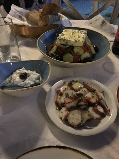 Read moreThe location is fabulous, and the food was good, but did not merit a 189 euros bill. The catch of the day was fresh but seriously underwhelming for that price for a family of five. The fish was just slapped on the grill without any seasoning. Before this, the most expensive bill this 3-week trip has been around 95 euros — at some seriously gourmet restaurants. The mussels in tomato sauce and feta were fabulous. The Greek Salad was just ok. The olive oil served with the crusty bread was delicious. The house white wine was pretty good, too. The roasted vegetables were overcooked. I’d give this restaurant 4 stars for the food (mainly for the mussels and bread/olive oil), but knocked it down to 3 stars when factoring in the price. If you stay away from the catch of the day you should be fine, but the fresh fish was...