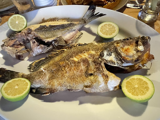 A warm welcome, good menu, quick service, though remember that food is cooked to order, some on a great big out door grill so not "fast food", just wholesome local dishes. The meats from the grill are very large portions, easily enough for two. The largest pork chop I have ever seen, salads fresh and equally generous. Also enjoys views over the sea and sunsets. There's parking close by and few steps up to the main terrace, so access is not too bad. As always the seafood salad is a delight and any of the fish too. Remember it's priced by the kilo, not portion, so can sometimes seem pretty expensive, but is freshly grilled and delicious. Sunset can be enjoyed from your table, pretty much through the season. Check for the daily specials, not always on the menu. 2025 sees a new front of house team, who are not yet masters of their profession. But are improving daily. The food is as good as always, and the sunset view is one...