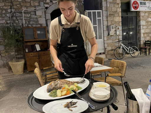 Read moreThe Medikon Mediterranean Cuisine restaurant is situated in the pretty fishing village of Agios Nikolaos in the Peloponnese peninsula of Greece and is about an hour and a quarters drive from Kalamata where the main airport for the region is located. The restaurant itself is situated in the centre of Agios Nikolaos adjacent to the harbour where you can eat and enjoy your food whilst looking at the clear blue water of the Mediterranean Sea. We visited the restaurant twice and on the first occasion shared a Coq au Vin, which was lovely. On our 2nd visit the penultimate evening of our holiday we decided to treat ourselves with a fish main course and dined on a beautifully served Groupa, which tasted fabulous. This was accompanied by a wonderful dry white wine from Northern Greece. We were also generously given two light starters to enjoy from the staff whilst we waited for our fish to be prepared. The staff were friendly and highly professional at all times. Definitely if you are visiting or staying in Agios Nikolaos be sure not to miss the Medikon for at least one of your dining our...