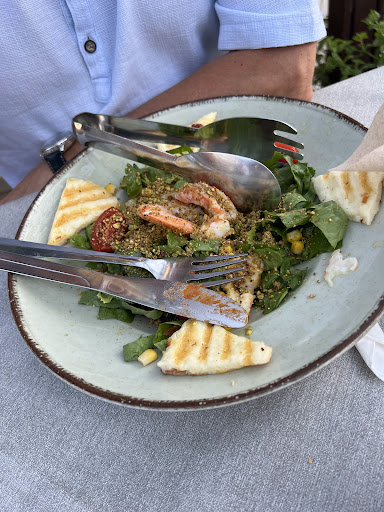 Read moreWent there late in the evening with the kids after a beach day. Setting is amazing and the selection of food options is great. Food was very tasty as we sampled a bit of everything. Eating out with kids, the starters came quite quickly and were well received, even ordered another portion of the popcorn shrimps the kids loved. Unfortunately, it then took another 45min or so until additional starter and the mains came, by then it was so late that the kids almost fell asleep at the table and didn't eat anymore. Stuffed squid was delicious, mixed seafood was plenty, only Octopus was a bit burnt and disappointing. Overall very good selection of interesting options (loved the stuffed courgette hearts), good value for what you get and nice setting outdoor. It was a shame it was so slow for the mains despite the place clearing out as so much good food...