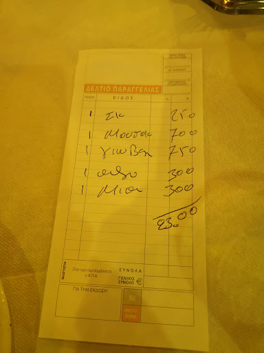 Read moreNot a great experience, although edible, was not a gastronomical fantastic experience!! Just average for a just average price. See pic of the bill. Moussaka was cheaply made, but the beef dish was really nice, if very small. Nothing offered to accompany, not even bread!