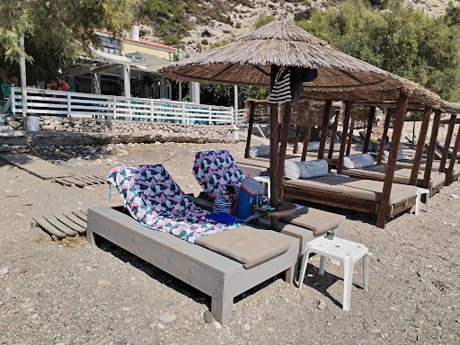 Pleasant tavern right on the beach, very nice, albeit slower service. They offered us moussaka from the daily menu, but it probably wasn't fresh, it wasn't very good. They have very comfortable sunbeds for a fee. There is a shower which is hidden between the tavern and the chapel around the corner behind the toilets. The beach here is stony, the sea clear. Picturesque,...