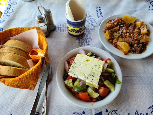 If you want to experience the truly local food - the food that people of the island actually make at home and eat every day - with no touristy pretense, this is your place. I went to Kerkis twice for lunch and had a perfectly cooked fish, a delicious beef stew, some nice local lentils, and Greek salads with plenty of feta. The atmosphere is all I needed from a genuine Samos eatery: beauriful hilltop view through the wide open windows with fresh air. Even better, it's a hangout of the town's working people, not tourists. The food reminded me of what my own grandparents would cook for me: hearty, generous, honest. And with zero performative nonsense for ripping off tourists. This place is the opposite of the typical tourist traps that abound on the nearby streets and at the port. Avoid those places (including those with high ratings) and...