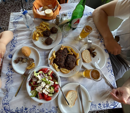 Read moreUne des rares adresses ouvertes tous les jours et toute l'année ! Après nos longues randos nous avons trouvé ici bonne chère et réconfort. Cuisine locale et surtout bon marché, arrosée d'un bon retsina, que demander de plus. Cette taverne est ouverte tout le temps parce qu'elle fait office de kafeneion, donc centre de la vie sociale de tout le quartier, où les locaux viennent manger, boire un coup et discuter: tout le charme de la Grèce authentique. La vue est agréable (sur le clocher en réparation après le tremblement de terre de 2019(?), la déco rétro avec les vieux transistors...Nous avons spécialement apprécié la tigania, la moussaka, et autres plats cuisinés (mageirefta), et l'ambiance (agriculteurs, le Pappas, les profs et le charmant couple qui gère tout...