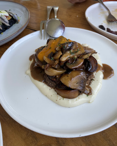 After a couple of offers to order more food our dishes arrived. The potato purée was recklessly scattered all over the plate as if it was a pourage. The sautéed vegetables was bland and few, the white wine sauce was to thin and did not interact with the purée in a satisfactory way, all it achieved was to emulate the consistency of a pile of mud with a pinch of rainfall. The rooster was bland and like the rest of the plates lacked seasoning. The dish was comparable to what you would expect of your mother’s couldrouns but without the charm of a home cooked meal.