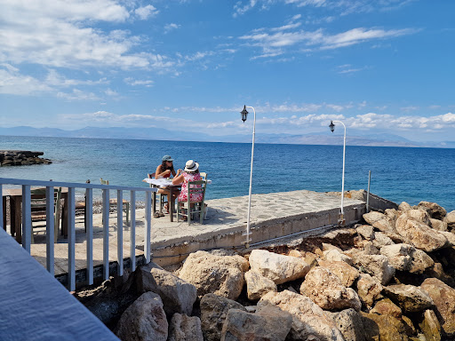 Traveling south we came to Lykoporia hoping to find a place for lunch. What a discovery to find this gem! We were warmly greeted and led to the open sitting area viewing the sea. We were mildly surprised there were only empty tables. We quickly learned most were reserved, as we were a little early at 2pm. The menu was quite traditional with a fish focus but plenty of other options. Being sensitive to gluten, we asked our server about it. We didn’t get the usual “gluten?” look, but a response of understanding and she explained that they used gluten-free flour for the fried zucchini, which we ordered and loved. I wanted fish, so we were led back to the cooler to inspect the catch and decided on the cod. It was beautifully cooked, and delicious. My sister ordered the lamb ribs. The six ribs were served as if cut from a rack of lamb. Each rib’s lobe of meat was tender and deliciously spiced. We shared our dishes and a green salad with finely sliced avocados, cranberries and a balsamic glaze. Heavenly! The red house wine was good with the ribs. We finished with a chocolate covered ice cream on a stick, complements of the house! Combined with the sound of the waves of the blue, blue sea and quiet conversation of the tables as they filled up was a truly memorable experience. The meal was served by both our knowlegable server and one, assumed the proprietor who spoke to us with mock seriousness and a twinkle in her eye, as if we were old friends. There were three tables out on the small pier, I assumed for later meals when the sun was less intense. Hopefully we will be able to drop in on our way back...
