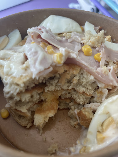 Read moreΜαγαζί με burger, sandwiches, pancakes, κρέπες, καφέ και χυμούς κοντά στην πανεπιστημιούπολη Ζωγράφου. Διαθέτει μικρό εξωτερικό σκεπασμένο χώρο. Πήραμε 2 burgers με μπιφτέκι, ντομάτα, μαρούλι, τυρί cheddar, καραμελωμένο κρεμμύδι και honey mustard σος και στο ένα προσθέσαμε σος αβοκάντο, συνοδεύονταν και τα δύο από τηγανιτές πατάτες, επίσης πήραμε μία σαλάτα Caesar. Η σαλάτα είχε φρέσκα υλικά αλλά δεν ήταν η κλασική Caesar. Τα burger ήταν μεγάλα και οκ για μαγαζί που δεν είναι μπεργκεράδικο. Οι πατάτες ήταν προτηγανισμένες. Ο λογαριασμός πολύ ακριβός για την ποιότητα του φαγητού και το μαγαζί (28,70€ για δύο burgers με προτηγανισμένες πατάτες και μία σαλάτα).Η τουαλέτα δεν...