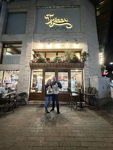 I always refer to this as the BEST bakery in the world and I mean it with all seriousness. Whenever I visit family in Naousa I insist on coming here, it’s such a treat. Family owned for generations, you can feel the genuine love. They work so hard, hand making 95% of the vast inventory of products carried in the store daily at their commissary just down the street. The presentation is fantastic, service unparalleled, location perfect, and the atmosphere with the upstairs seating room overlooking the quaint old-world European village below ideal. Oh… the coffee is to die for too. 👌🏼