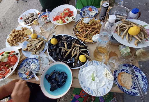 Undecided if to really give 5 stars but ok. It holds (and will probably hold it for a good while) the distinction of being the restaurant with the hugest portions we ever saw in Greece. To be fair, everything in Keramoti seems supersized, it might be an adaptation to a certain demand. Anyway, there is no indication about it apart perhaps from the prices which seem odd for a little place in a ferry port: like 9 euros for a greek salad, 8 euro for saganaki, 8 euro for fried zucchinis. And they don't tell you anything which is annoying. Then it starts coming (very fast) and you realize with horror the mistake you made. The salad is close to 1kg with I think 250-300g of feta cheese (see thickness of the slice in the pictures), the zucchinis were probably 5 whole ones before frying and the saganaki cheese 3 slices. I must admit that I also fed 3 dogs and 2 seagulls with part of the leftovers. And everything else gets thrown away, which is a waste, sadly. The quality is mainly ok but not the best we had. The service was fast and the personnel was friendly (apart from letting us order a truckload of food...