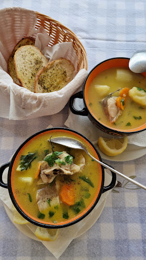 We went there in the morning for breakfast to have fish soup and Greek salad with garlic bread. 17 Eu.