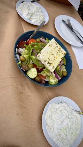 Read moreVery good value for money. We ordered 1 of each chicken, pork and lamb skewer portions , 1 Greek salad, 1 feta honey sesame , 3 beverages,1 water and bread for a total of 45 euros . Considering everything was tasty and perfectly cooked , I highly suggest it. Also the place is really beautiful and you have anything you want as far as seats are considered (indoors, outdoors,...