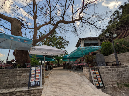 This is not a review of the food of this establishment. It is an intense critique of the way the particular restaurant has in my opinion destroyed a historic Greek village with tasteless umbrellas right at the entrance of the village. The inhabitants of this village have spent an enormous amount of time, energy and money over many decades to maintain everything in the traditional style. This is a crying shame and a disgrace.