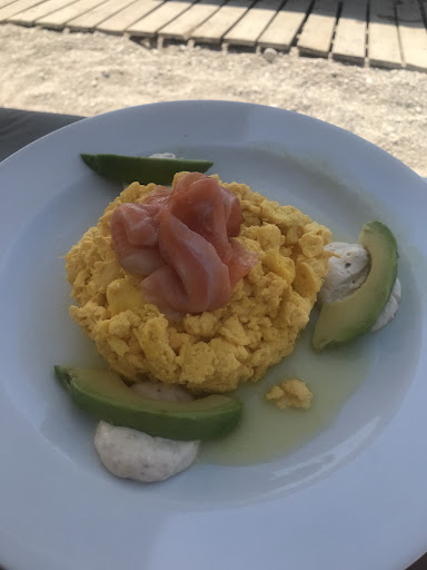 Read moreCame for a day at the beach, including breakfast at the beach. We took two different type of eggs - not only that the portion was HUGE, it was delicious and wonderfully served on our sunbeds- they thought of everything, even proper serving for the beach. The value for price is excellent- very well done! Beds are good, large and comfy. If you eat/drink more than 10 eur per person, the beds are free, which is extremely fair and proper! Will definitely keep coming back to this beach bar! Update- we also had lunch and it was even better than the the breakfast! Enormous portions, fresh and delicious! And seeing that the staff is carrying the plates from up the hill all the way to the beach- if you come here, please give them a nice big tip! They are doing an...