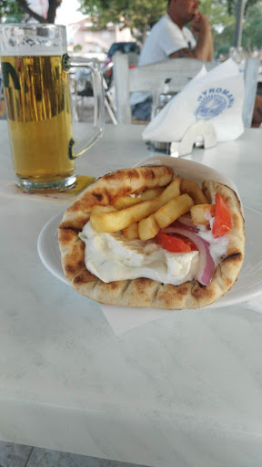 If you are staying in Ammoudia, you should definitely go to Gyromania. Except gyros, you can find a variety of other tasty options in the menu (salads, burgers etc) and tasty draft beer. It's right next to the beach, so you can have a quick snack between your swims :)