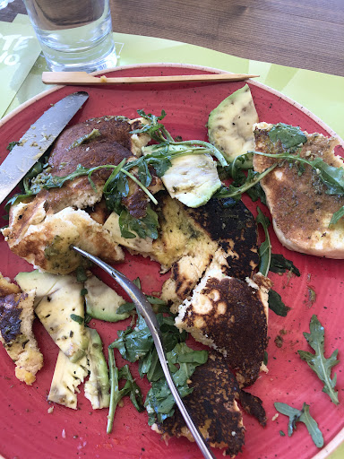 I ordered the avocado pancakes, and was quite excited. Fortunately, they were willing to remove the mayonnaise and cheese and add pesto for me instead. This was great!