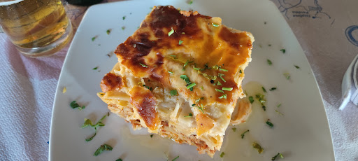 I had Pastitsio and for a Pastitsio it was ok. Nothing great, but not bad either. The portion cost 9.5€. There are many dishes to choose from and prices ranging from around 8€ to 20€+. Prawn pasta looked awesome. Also Pork Steak was a good sized one. Chicken skewers were nice. Drinks were cold and glasses chilled. Beer 0.5L? 4€? Total with The 4 portions, two beers and two...