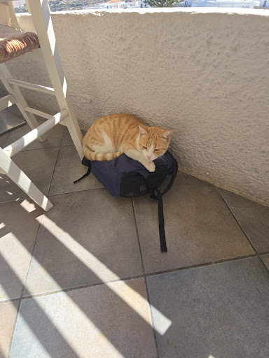 The food was good and the view is excellent. The bad rating is for the owners attitude. When we arrived there were two cats that sat next to our table. I ordered fish and the cats were asking for food. I started giving the cats some of my fish leftovers. We were the only people in the restaurant at a time and the waiter was right there and I am sure he could see what was going on. The two owners also started to eat at a table behind ours at some point and might have also seen that I am giving my fish leftovers to the cats and nobody mentioned anything to me... the cats were happy and I ended up giving them all my leftovers. When the owner stopped by the table he started scolding me about making a mess. Then his wife joined him and explained to me that they don't pay their employees to cleanup the mess. I cleaned all the leftovers from the floor with napkins (although the cats were doing a pretty good job in consuming all of them). I told them that if they don't want people feeding the cats in the restaurant they should make a sign. The lady said that there are laws protecting the cats. I travel alot and in many restaurants if there is a pet coming to your table, its not forbidden to feed them usually... the comment about me making a mess is totally ridiculous as what if I made a mess by accident... I feel their attitude should get better! They also offer you bread and water when you arrive. I assumed the bread was complimentary but it wasn't... I was charged 3.60EUR for the bread. The bread was a plain bread and I asked for olive oil and balsamic vinegar. They brought me a teeny tiny bottle of olive oil and to my surprise they charged me 2 EUR for that!! They were out of balsamic (luckily as I am not sure how much they would of charge for that...). They also put water on your table without asking you if you want it (they didn't ask if you want a bread either and gave no warning that the olive oil is extra charge). All in all not a good experience (despite the amazing view from the restaurant, cute...