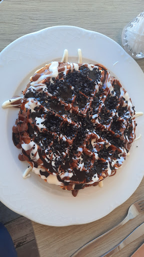 I ordered the Mixed waffle the first time and the Plain waffle the second time. My friend ordered the pizza margharita twice. We also got milkshakes. The portions were very big and for a good price. The vanilla milkshake sort of tasted like cookies for some reason, which was strange, but I didn't mind it. Everything tasted great (hence why we came back). The service was quick, however the server seemed a bit shy, I guess? Could be that he just didn't know much English, I don't know.