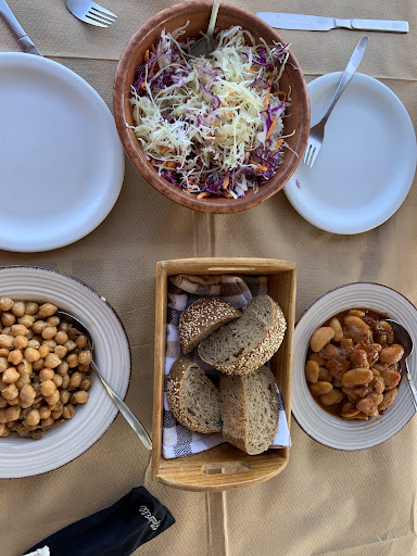 We came for our dinner as we loved the view and the setting. On arrival we were met with “I’m not sure we can find a table” attitude even tho the restaurant was 2/3 empty. The waitress with plaited hair was the worst, very unfriendly, rolled her eyes when we asked if the meals come with fries or anything. She said no, so we ordered French fries with our meals. Turns out, all the meals came with side dish!!! After about 20 minutes came french fries, but then you had to wait 30 mins for the main meals, by which time the fries were cold. We tried to order second round of drinks but were ignored. When we finally managed, the drinks never came. But were still charged!! The meals were tasty, particularly the rabbit. But the service was really poor, you felt like you were nuisance for being there. It spoiled our evening as we love Lefkes. The woman in particular was unpleasant, she didn’t even bother to reply when we said Good buy....