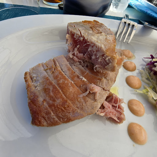 Read moreA nice restaurant by the beach. The restaurant is located close to the beach. There is a part of the beach directed by the restaurant staff. You can have a sun bed, sun umbrella and drinks, and lunch// dinner in the same place. The Italian cuisine is offered. We tried tuna tartar (16.-eur). Simple presentation. Average taste. We tried grilled tuna: 2 pieces about 24 euro. Served with cabbage salad and french fries. Simple presentation, average taste. Tuna was fresh. The staff is friendly. I recommend this place.