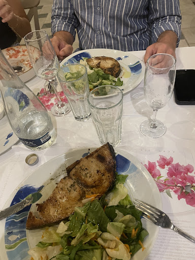 But the real low point was the main course. We had ordered three swordfish plates, supposedly identical. One arrived with a portion half the size of the others – visibly and embarrassingly different (we took a photo). We pointed this out to the first waiter, who said he would “look into it.” We waited five minutes with no further communication, while the food sat getting cold.